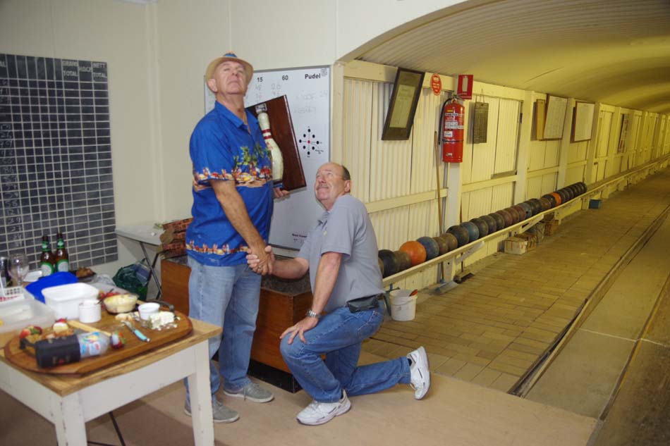 After dining on a gorgeous spread of nibbles supplied by Mel & Maelyn, many bowls, drinks & pizza; it came down to the shoot-out. Goof versus Larry. (Go Larry Go!) Yep Larry put the ball in the gutter so GOOF is the WINNER.