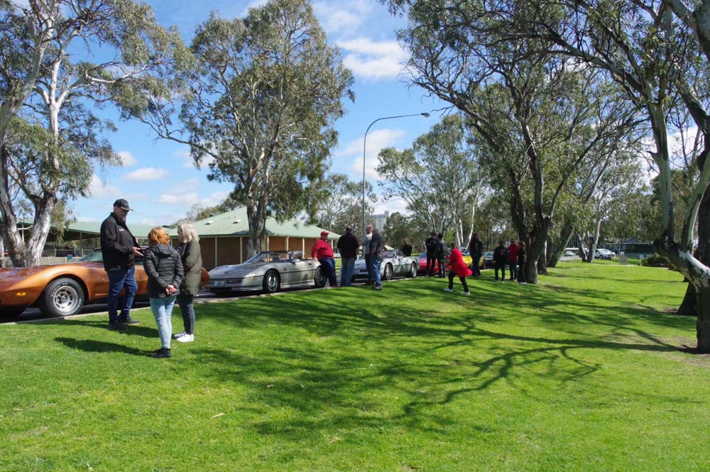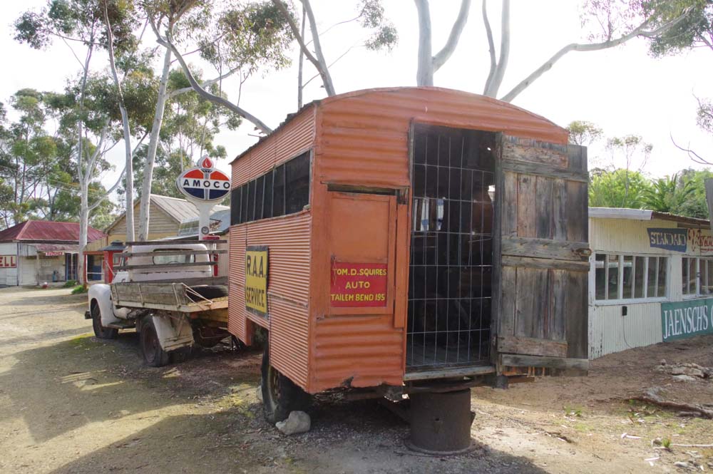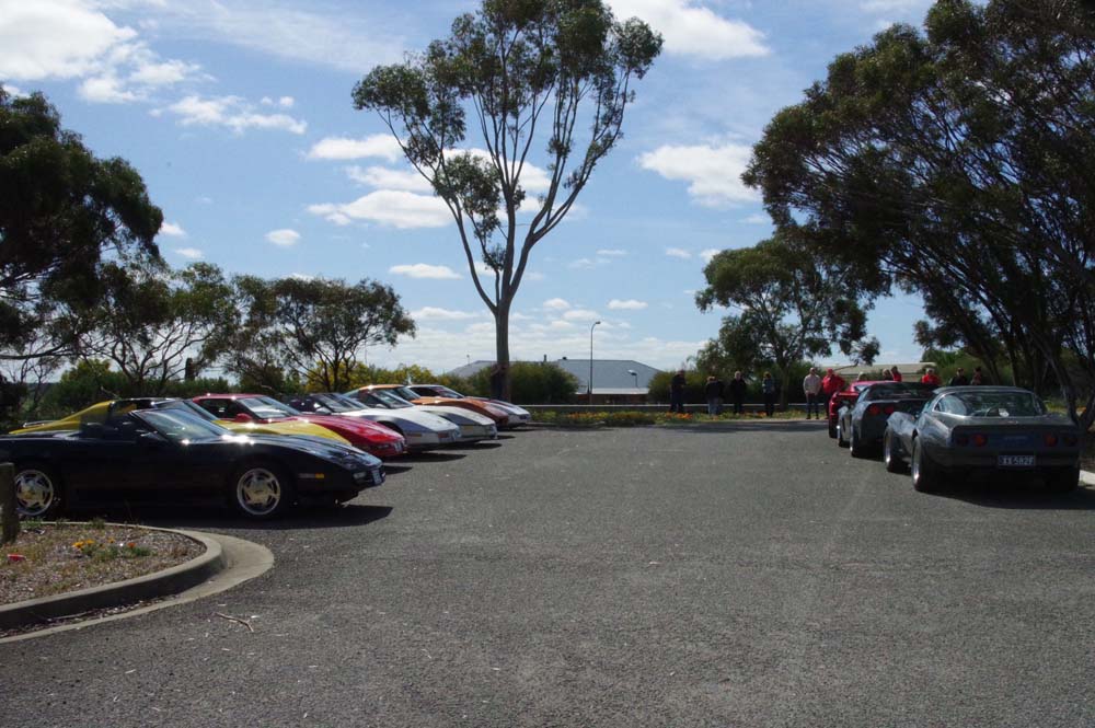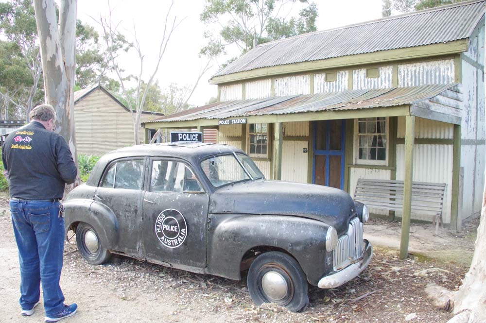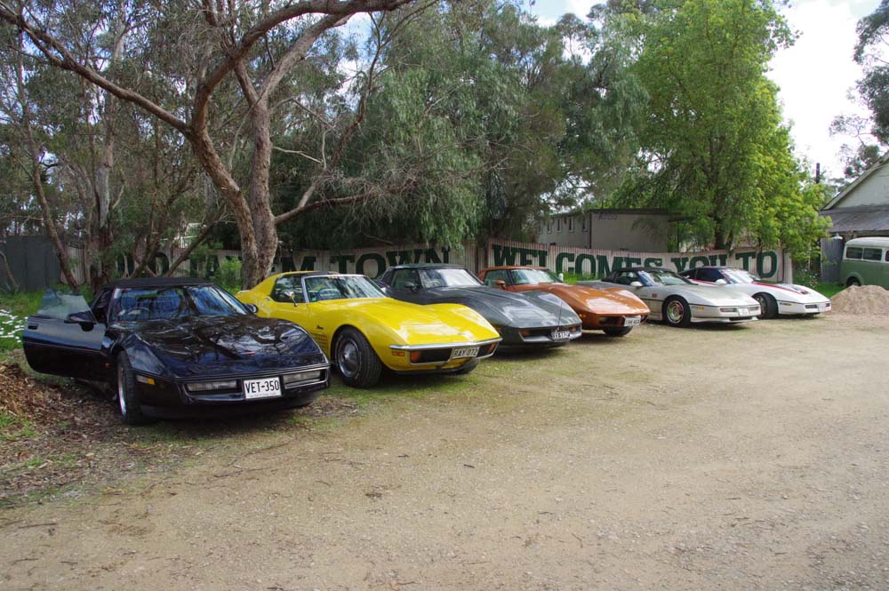 Checking out the cars arriving, I noticed a new Red C8. Now Gary & Cathy were away, & Angelo wasn’t there. Hmm?? It turned out that the newer club members had only picked up their car at 5:00 pm the night before. They decided to join us on our Saturday run. Welcome Graham & Marie Rudloff. These guys are very keen, keen, keen. After the briefing we headed up the freeway, turning off & cruising through the main street of Hahndorf. Anyone sleeping in was woken by 11 Corvettes cruising through their town. We took the Old Princes Hwy through to Murray Bridge, picking up Ruth, Stuart & Serge at the Blob at Mt Barker turn off. Was a beautiful run through the hills on the old road. Basically no traffic, stopped at Murray Bridge by the Bunyip to stretch the legs & check out the river levels & flow. Back on the road, we stopped at Frank Jackman lookout for a photo shoot. Continued on to Tailem Bend Hotel where we met Greg, Chrissy, Rob Butler & Karen for lunch. After a leisurely lunch most of us continued to Old Tailem Town which is a recreation of the early Aussie Town layout. It has been put together over many years by a family that wanted to preserve history. It is worth a visit. As you can see by the photos, it’s not just old buildings, cars, memorabilia; you will also see a prisoner & a dunce there for entertainment.
