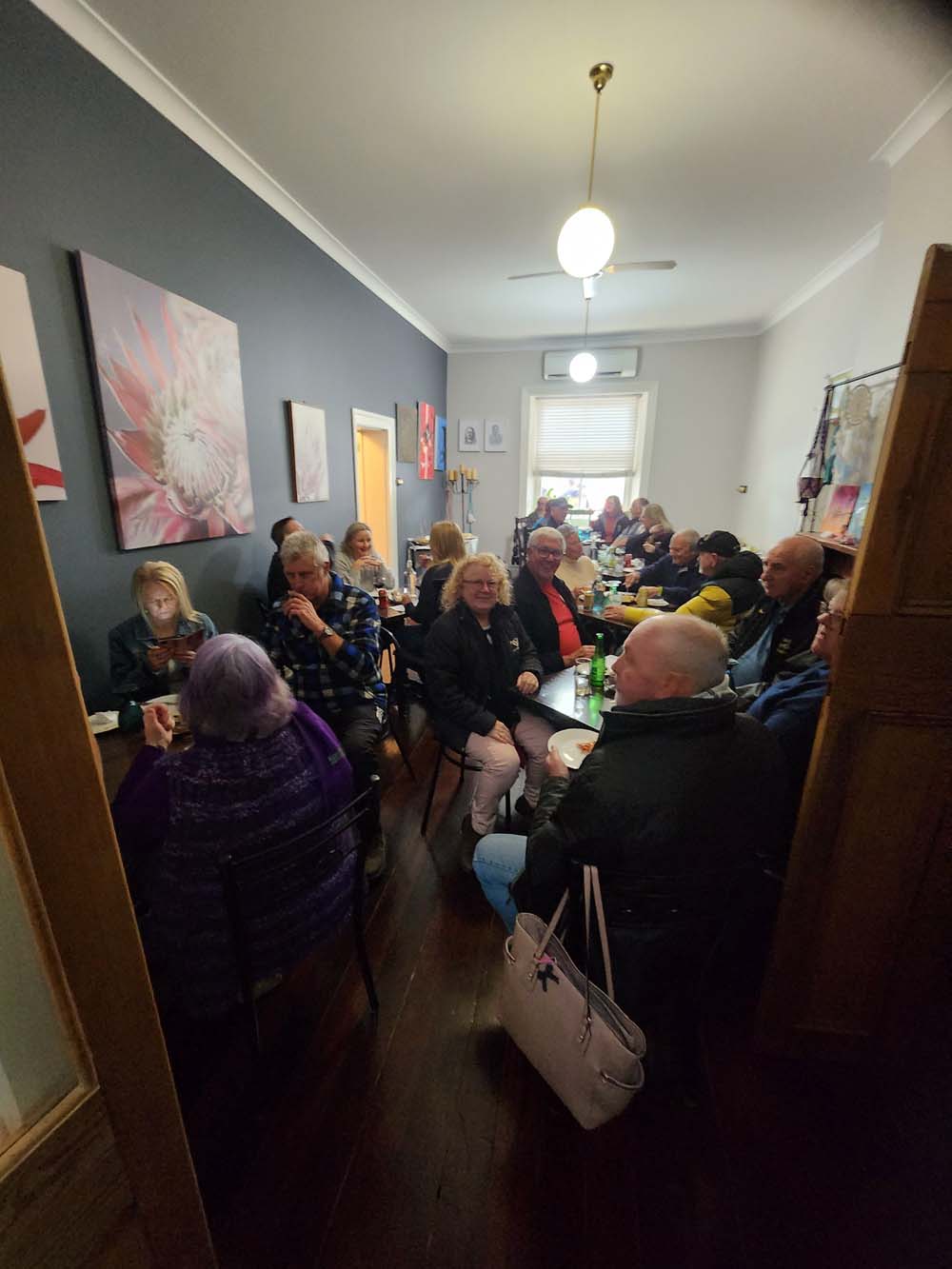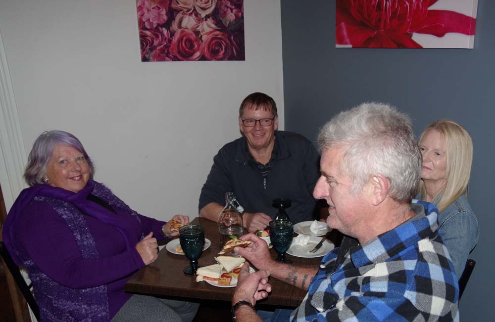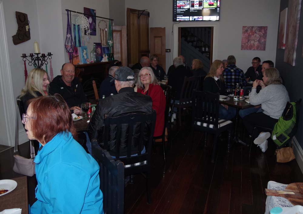 After being guided by Graham for the mandatory pictures, we had a C3 C4 & then C5 out the front of the pub. Shawn said it looked great. Then we wandered inside for drinks & lunch of pies, pizza, sandwiches with fancy cakes for