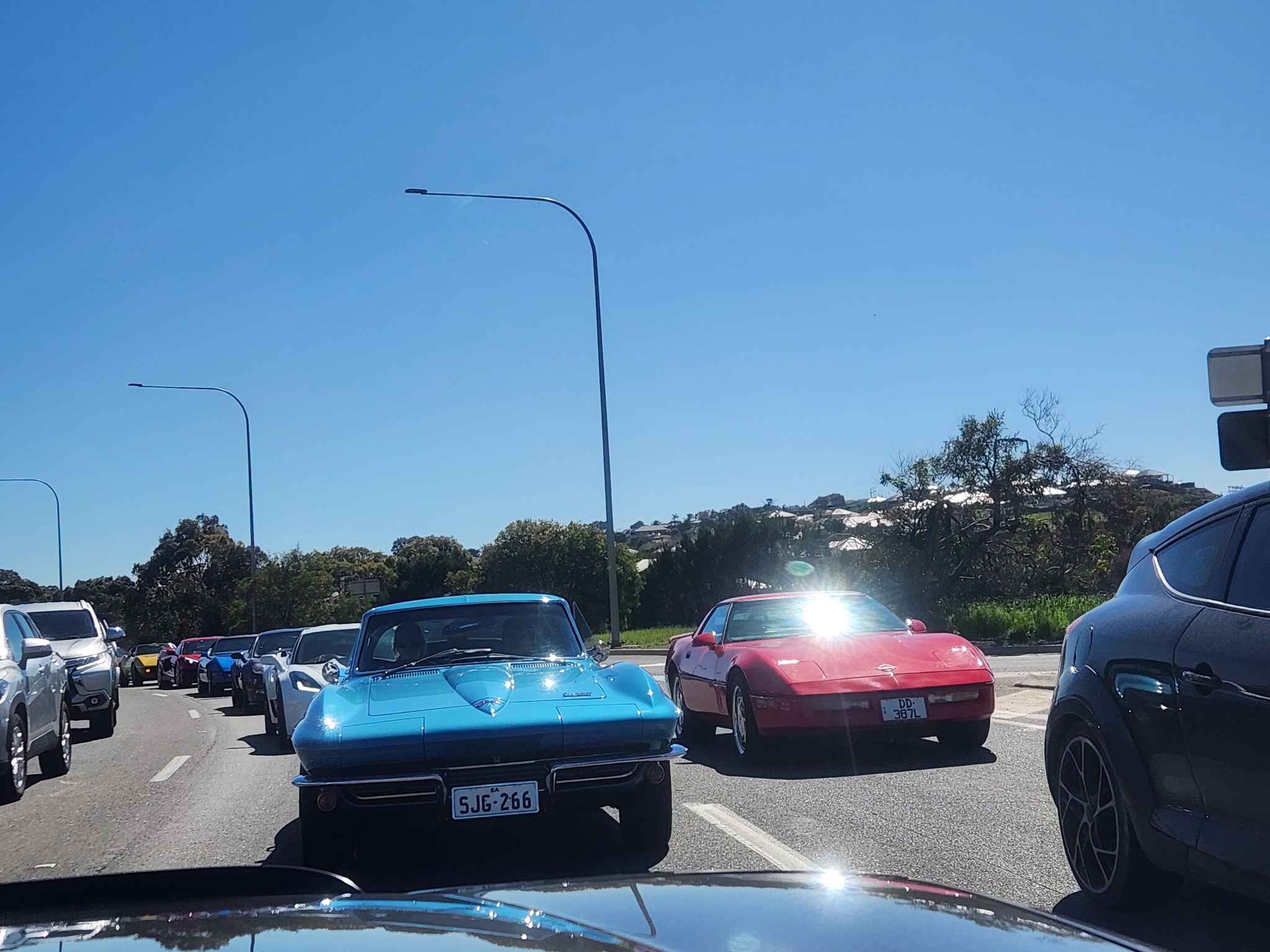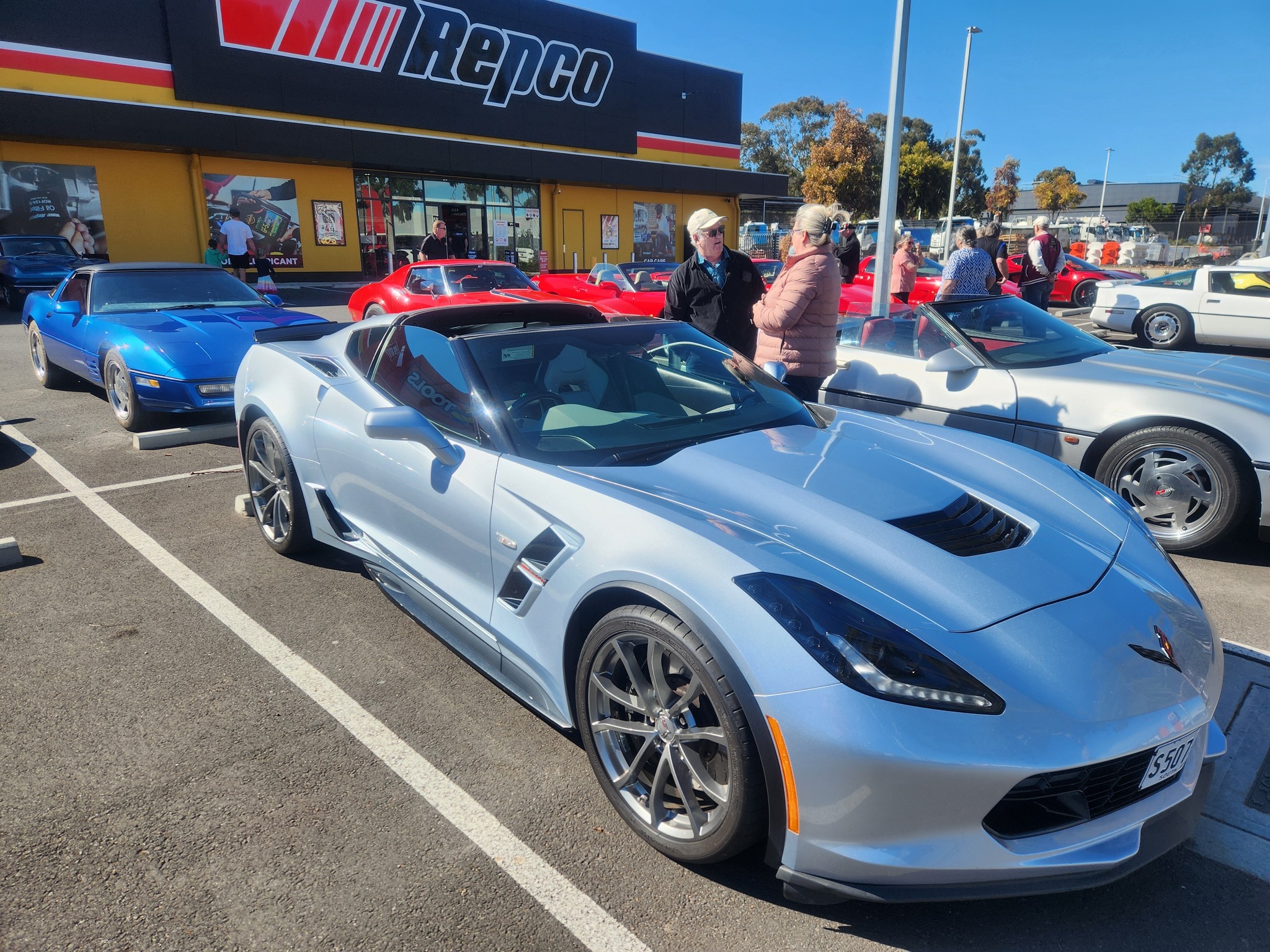 21 Corvettes lined up this morning for the Graham Johns Memorial run from Repco Marion to The Bridge Hotel Langhorne Creek via Mt Compass.