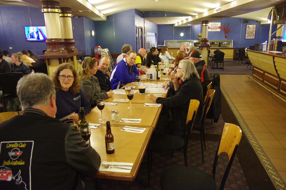 As you can see, Corvette owners love having a good time.Following on from the LWE in Whyalla, 17 of us chose to travel on to Port Lincoln. After driving along the coast via Tumby Bay & stopping at the Excell Steam Museum we arrived at Hilton Motel, right on the foreshore. We enjoyed a relaxing meal at The Marina where we sat on the Boardwalk with a view of the Port.