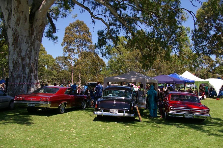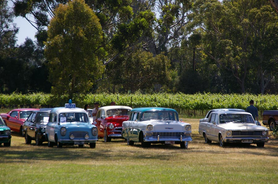 14 cars from our club arrived at the Castle Plaza Shopping Centre for the 'Cruise 4 Kids' charity run. This was open to all car clubs or like minded people who wished to join. The idea was to cruise from the shopping centre to Serafino's at McLaren Vale for a day at the lake with various Rock & Roll bands & a dance floor set up. We found a perfect spot under a huge gum tree right next to the lake where we could hear the music & see the dance floor, but still be in the shade as it topped 36 degrees. Plenty of food vans with variety, bar facilities & several trade / clothing stalls Selling 50s to 60s clothing & accessories, as people know 1 of my weaknesses. This was a top day with good rock & roll music, cars & most importantly good people to enjoy it with. Lyn & I would like to thank those from our club who attended & supported the cause. Article by Peter McBride, Photo's by Greg Woods & Peter McBride