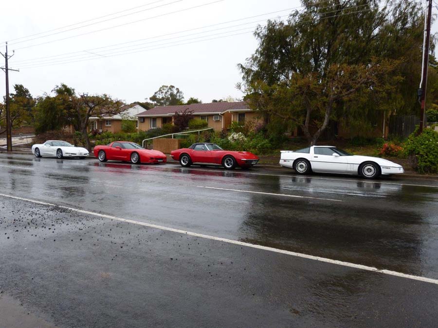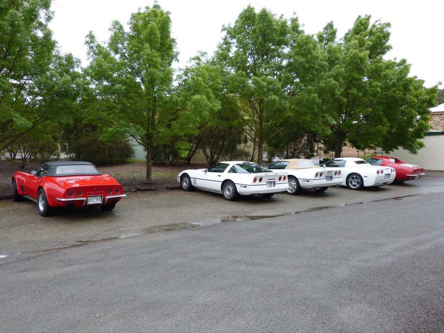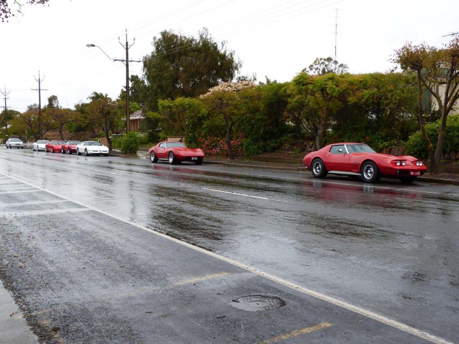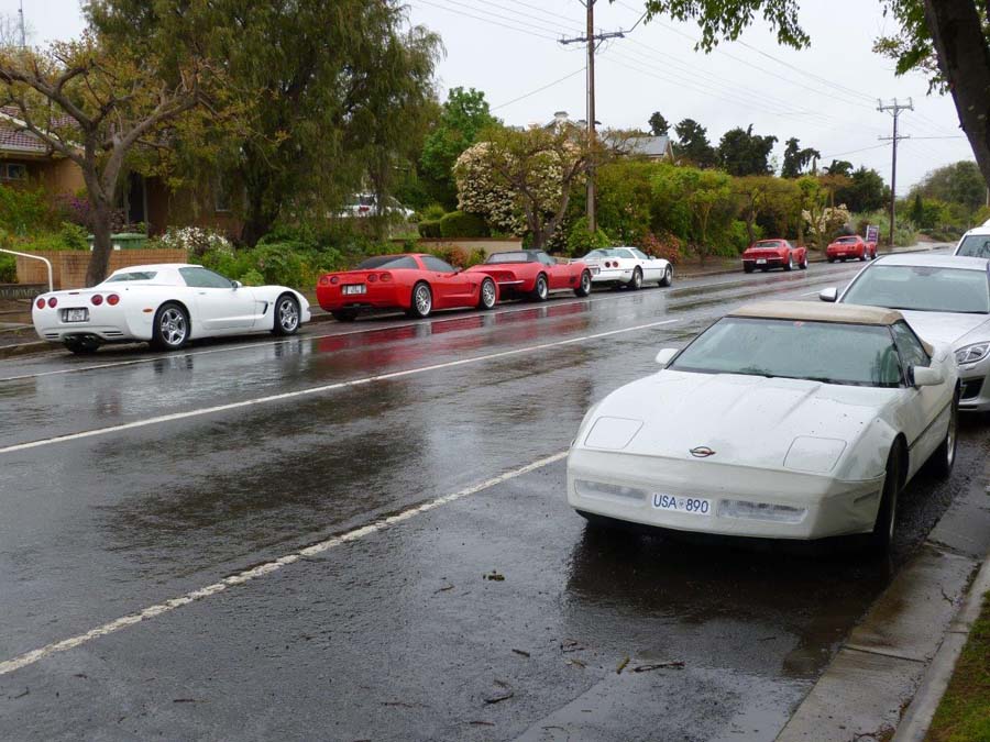 Before the start of this run nature kindly provided everyone with a free car wash….with a number of repeat rinses throughout the day! A total of 7 Corvettes ventured out in the damp conditions as well as 3 "support vehicles". Unfortunately not everyone read the email first and there was a bit of a wardrobe malfunction with only red and white Corvettes turning up. Goof and Mel who were our cruise captains for the day then gave us a quick briefing before we all jumped in our cars and headed off towards Clare.