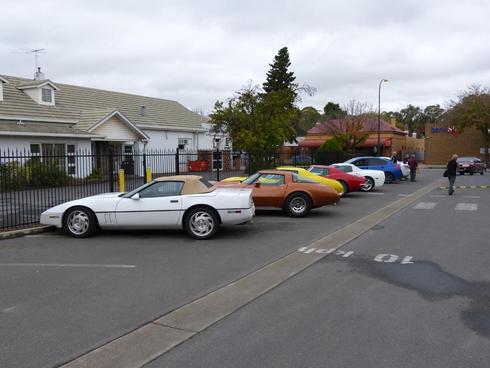 Mother's Day was a great reason to drag the Corvette out of the garageā¦...not that we ever need a reason. Neil Bailey was the cruise captain for this run out to Nuriootpa. Once everyone was at the meeting point it was time to head to the hills. Club protocols were strictly followed with the compulsory U-turn been actioned early in the run. Morning tea stop was at Lobethal which gave everyone's stomach a chance to settle down after contending with the windy roads. The stragglers (Breck & Helen) joined the group in Lobethal to bring the total number of Corvettes to 5 plus a Subaru and a Mazda. The predicted bad weather may have kept numbers down but Neil kindly organised for the torrential downpour to be delayed until the next day. From Lobethal we headed through Gumeracha where we encountered traffic chaos with the annual Medieval Fair in full swing. After clearing the congestion we enjoyed a pleasant cruise through the Barossa to our lunch destination at Nuriootpa. While waiting for lunch our President got in touch with his artistic side and created a self-portrait masterpiece with only a couple of colouring in pencils!! He did cheat to be honest, the 'Cute Koala' picture was already drawn and he only had to colour it in.