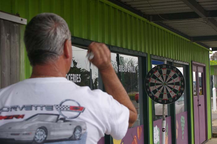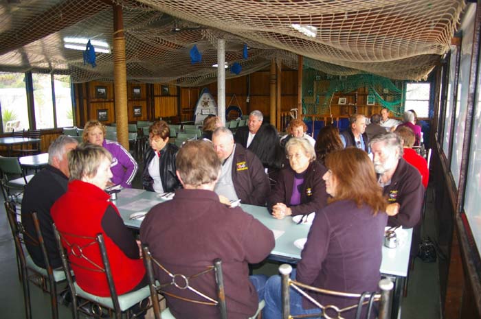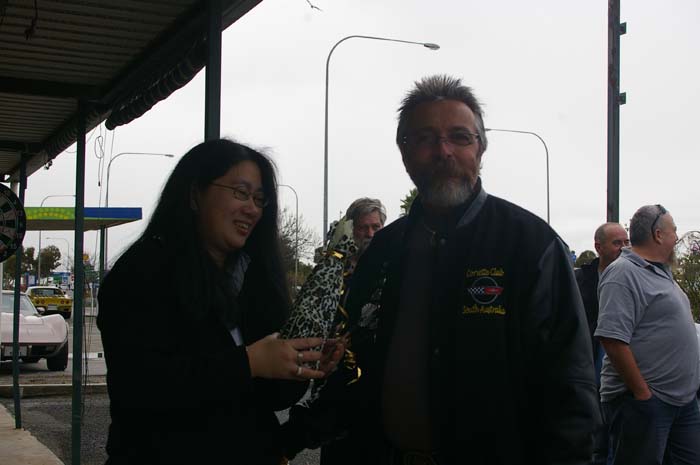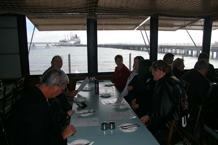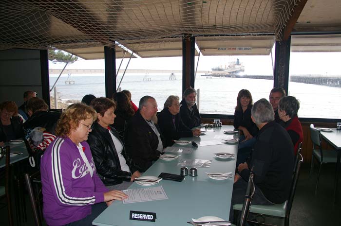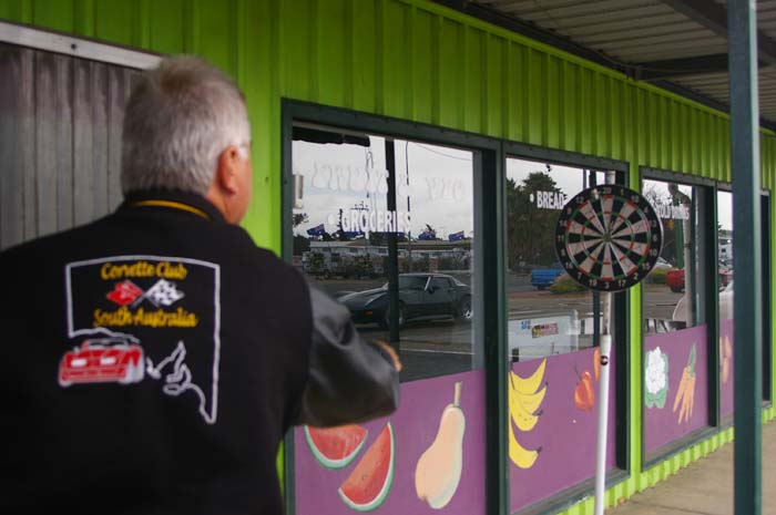 16 people met at Caltex Bolivar for our run to Wallaroo. Good showing of Vettes, true enthusiasts, BUT alas 2 had to bring Fords & lower the tone, (they at least stayed at the back of the pack, could not keep up). Stopped at Prices bakery for coffee & cake. (had to feel sorry for STU who had to get his own sausage roll because someone did not want to share.) After coffee, there was an impromtu game of darts with Catherine winning a bottle of wine & Barb & Carole coming 2nd & 3rd who received a magnificent little gold trophy. Onwards to Wallaroo via Moonta where we met Gus & Ricky from Whyalla joined us at the Boatshed restaurant (magnificent views) for a sumptuous meal of seafood, great service & friendly staff made for a great time. Most of us returned via Moonta to stop for a feed of pancakes, as if we really needed them.